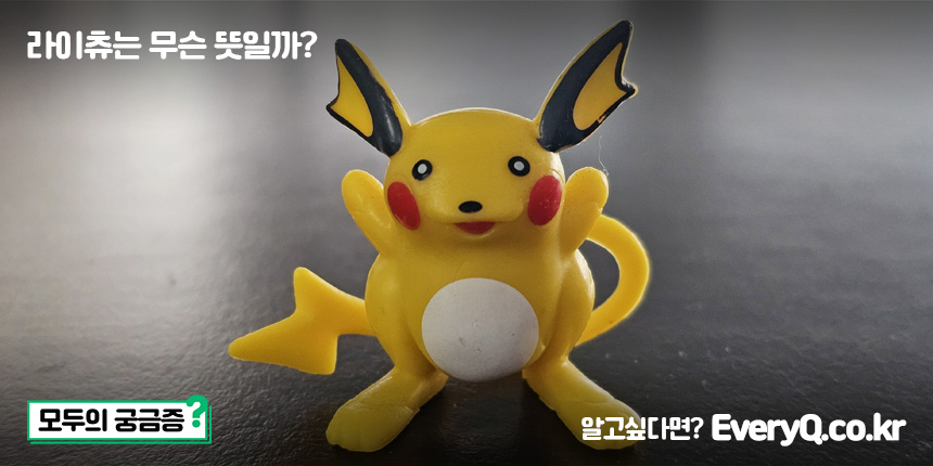 라이츄는 일본어로 "벼락"을 뜻하는 "라이(ライ)"와 "쥐"를 뜻하는 "츄(チュウ)"의 합성어입니다.