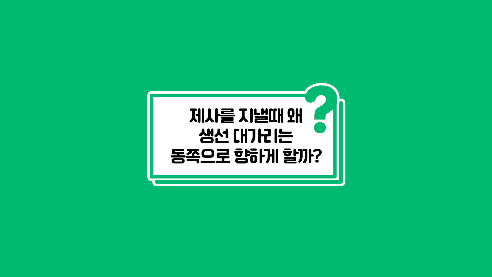 어떤 집안에서는 조상들이 살아계실 때 생선의 대가리를 동쪽으로 향하게 놓으셨기 때문에, 그 전통을 이어가고 있는 경우도 있습니다.