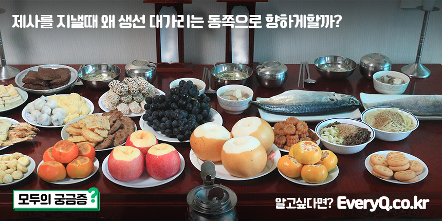 어떤 집안에서는 조상들이 살아계실 때 생선의 대가리를 동쪽으로 향하게 놓으셨기 때문에, 그 전통을 이어가고 있는 경우도 있습니다.