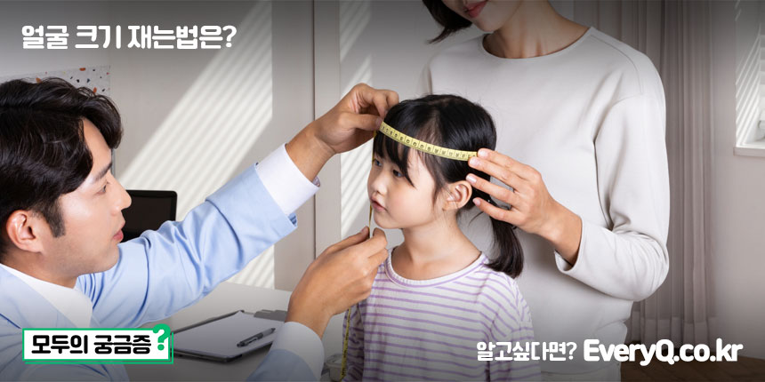 가로 길이는 안면과 귀의 구분선을 따라 측정하고, 세로 길이는 정수리 부분부터 턱 끝까지 측정합니다.