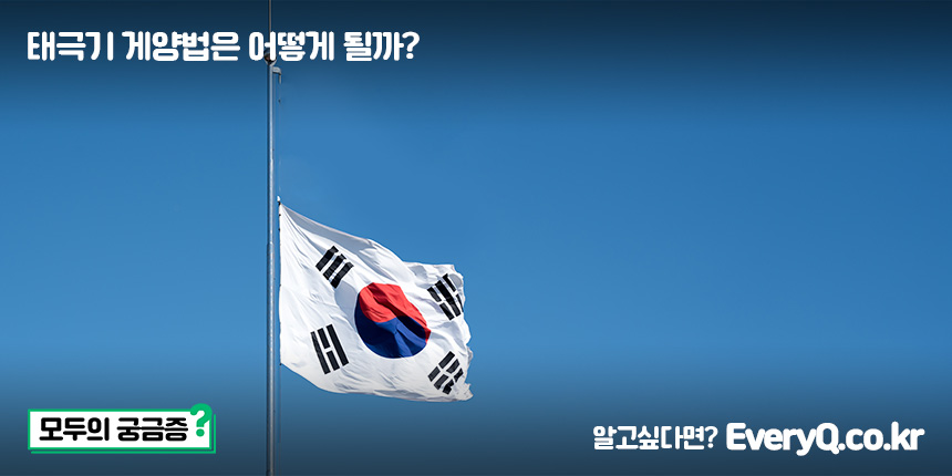 - 조기 게양: 깃봉과 깃면의 사이를 깃면의 너비(세로)만큼 내려 게양합니다.